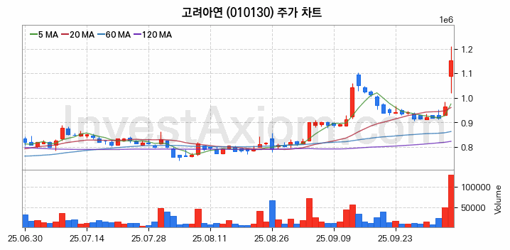 고려아연 주가 전망 분석, 주식 차트 분석과 기간 수익률 및 주가 변동성 분석 (25년10월13일)