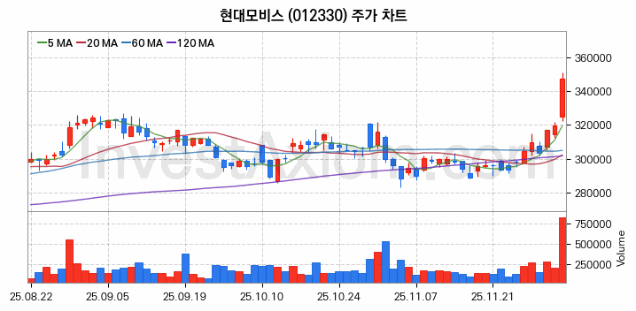 현대모비스 주가 전망 분석, 주식 차트 분석과 기간 수익률 및 주가 변동성 분석 (25년12월04일)