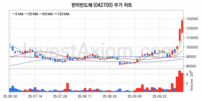 한미반도체 주가 전망 분석, 주식 차트 분석과 기간 수익률 및 주가 변동성 분석 (25년10월13일)