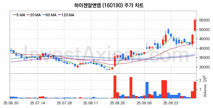하이젠알앤엠 주가 전망에 참고될 수 있는 상세한 주식 기술적 분석 결과(2025년 10월 13일 기준)를 제공하며, 전 거래일 대비 약 16.31% 상승한 주식시장에 상장된 하이젠알앤엠 주식 종목의 주가 차트를 비롯해 주가 상태, 주식 거래량, 기간 수익률, 주가 이동평균 및 기간 주가 변동성 기반 분석 결과를 제공합니다.