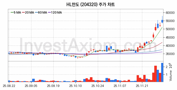 HL만도 주가 전망 분석, 주식 차트 분석과 기간 수익률 및 주가 변동성 분석 (25년12월04일)
