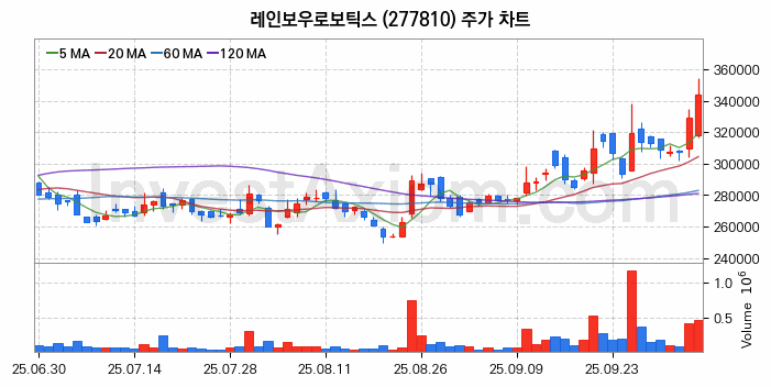 레인보우로보틱스 주가 전망 분석, 주식 차트 분석과 기간 수익률 및 주가 변동성 분석 (25년10월13일)