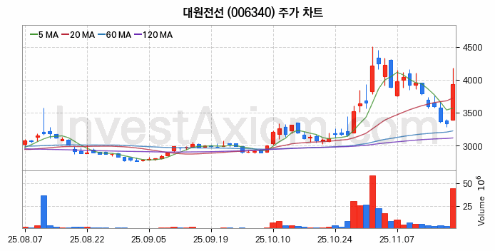 대원전선 주가 전망 분석, 주식 차트 분석과 기간 수익률 및 주가 변동성 분석 (25년11월20일)