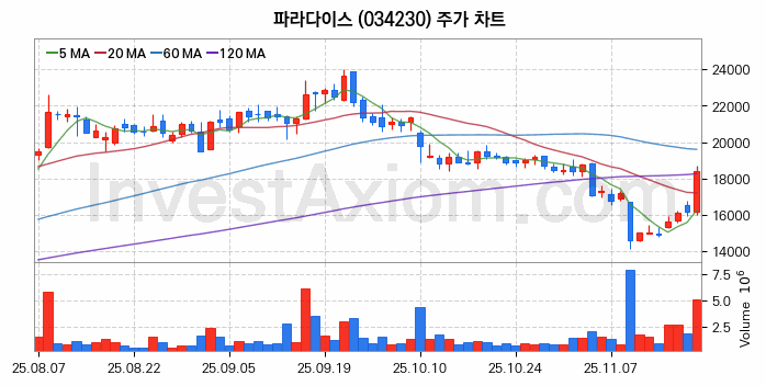 파라다이스 주가 전망 분석, 주식 차트 분석과 기간 수익률 및 주가 변동성 분석 (25년11월20일)