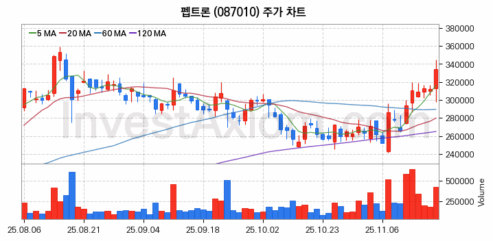 펩트론 주가 전망 분석, 주식 차트 분석과 기간 수익률 및 주가 변동성 분석 (25년11월19일)