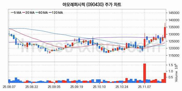 아모레퍼시픽 주가 전망 분석, 주식 차트 분석과 기간 수익률 및 주가 변동성 분석 (25년11월20일)