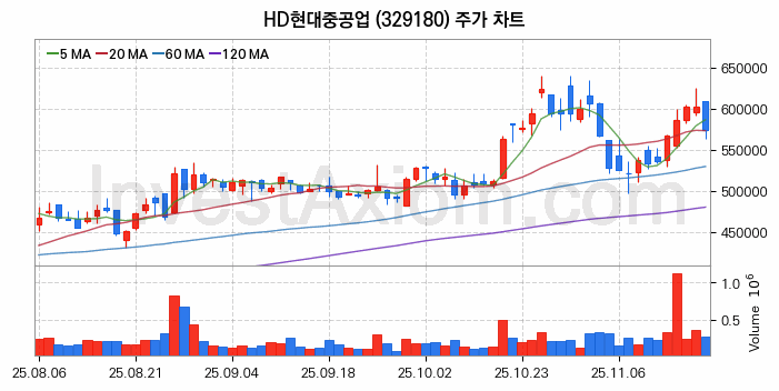 HD현대중공업 주가 전망 분석, 주식 차트 분석과 기간 수익률 및 주가 변동성 분석 (25년11월19일)