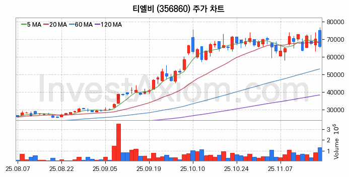 티엘비 주가 전망 분석, 주식 차트 분석과 기간 수익률 및 주가 변동성 분석 (25년11월20일)