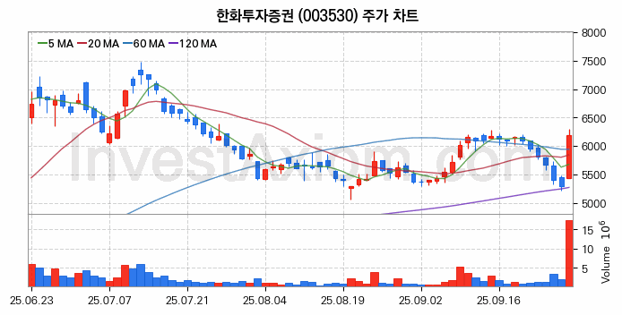 한화투자증권 주가 전망 분석, 주식 차트 분석과 기간 수익률 및 주가 변동성 분석 (25년09월29일)