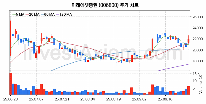 미래에셋증권 주가 전망 분석, 주식 차트 분석과 기간 수익률 및 주가 변동성 분석 (25년09월29일)