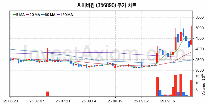싸이버원 주가 전망 분석, 주식 차트 분석과 기간 수익률 및 주가 변동성 분석 (25년09월29일)