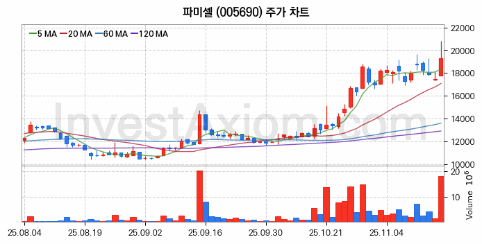 파미셀 주가 전망 분석, 주식 차트 분석과 기간 수익률 및 주가 변동성 분석 (25년11월17일)