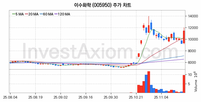 이수화학 주가 전망 분석, 주식 차트 분석과 기간 수익률 및 주가 변동성 분석 (25년11월17일)