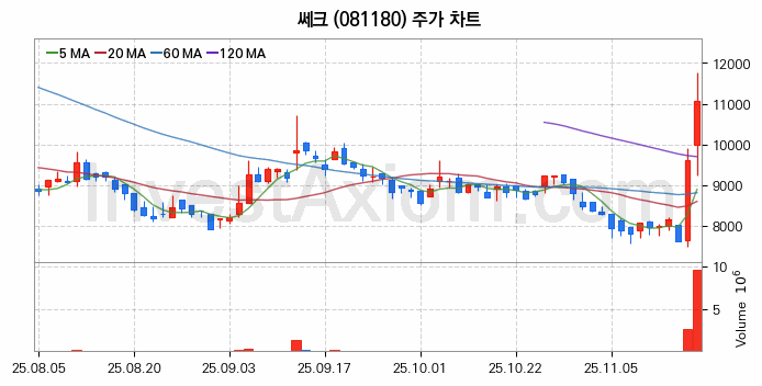 쎄크 주가 전망 분석, 주식 차트 분석과 기간 수익률 및 주가 변동성 분석 (25년11월18일)