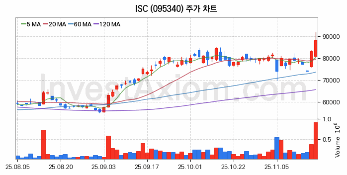 ISC 주가 전망 분석, 주식 차트 분석과 기간 수익률 및 주가 변동성 분석 (25년11월18일)