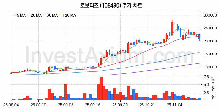 로보티즈 주가 전망 분석, 주식 차트 분석과 기간 수익률 및 주가 변동성 분석 (25년11월17일)
