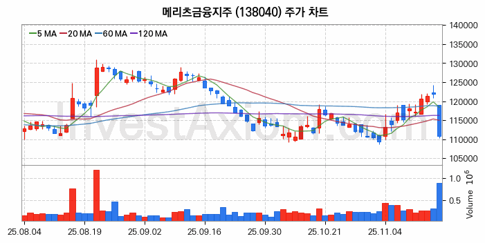 메리츠금융지주 주가 전망 분석, 주식 차트 분석과 기간 수익률 및 주가 변동성 분석 (25년11월17일)