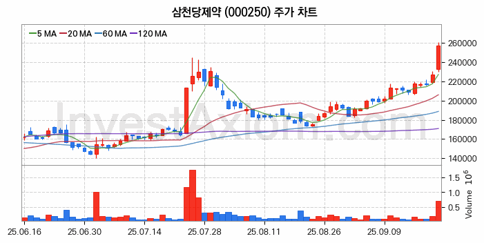 삼천당제약 주가 전망 분석, 주식 차트 분석과 기간 수익률 및 주가 변동성 분석 (25년09월22일)