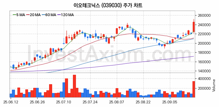 이오테크닉스 주가 전망 분석, 주식 차트 분석과 기간 수익률 및 주가 변동성 분석 (25년09월18일)