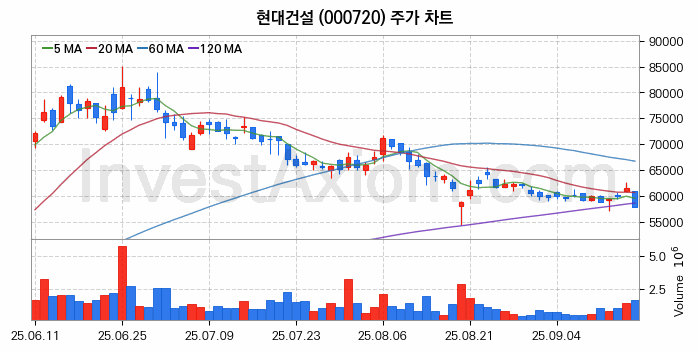 현대건설 주가 전망 분석, 주식 차트 분석과 기간 수익률 및 주가 변동성 분석 (25년09월17일)