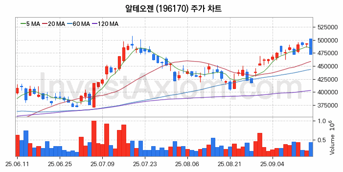 알테오젠 주가 전망 분석, 주식 차트 분석과 기간 수익률 및 주가 변동성 분석 (25년09월17일)