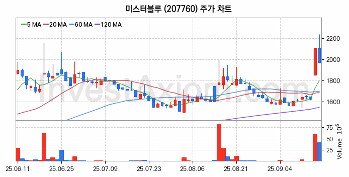 미스터블루 주가 전망 분석, 주식 차트 분석과 기간 수익률 및 주가 변동성 분석 (25년09월17일)