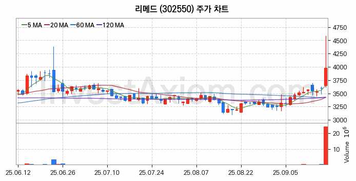 리메드 주가 전망 분석, 주식 차트 분석과 기간 수익률 및 주가 변동성 분석 (25년09월18일)