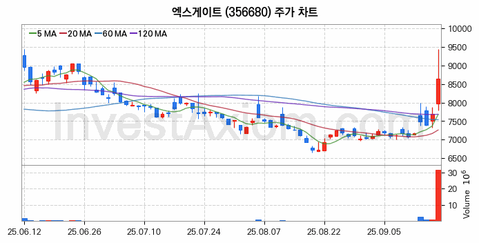 엑스게이트 주가 전망 분석, 주식 차트 분석과 기간 수익률 및 주가 변동성 분석 (25년09월18일)