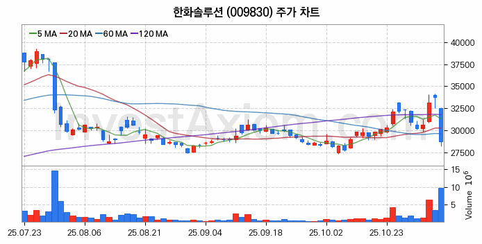 한화솔루션 주가 전망 분석, 주식 차트 분석과 기간 수익률 및 주가 변동성 분석 (25년11월05일)