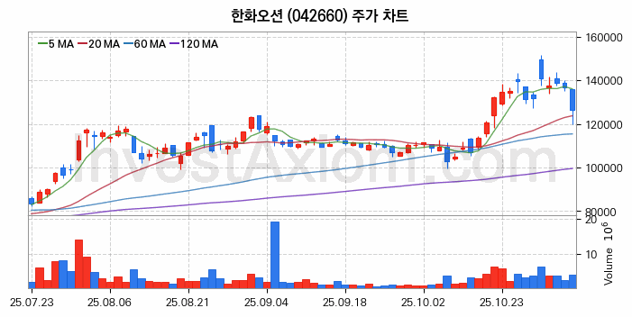 한화오션 주가 전망 분석, 주식 차트 분석과 기간 수익률 및 주가 변동성 분석 (25년11월05일)