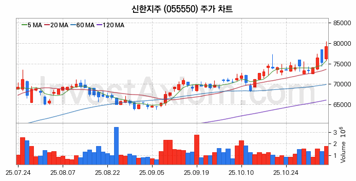 신한지주 주가 전망 분석, 주식 차트 분석과 기간 수익률 및 주가 변동성 분석 (25년11월06일)