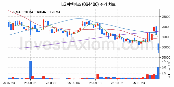 LG씨엔에스 주가 전망 분석, 주식 차트 분석과 기간 수익률 및 주가 변동성 분석 (25년11월05일)