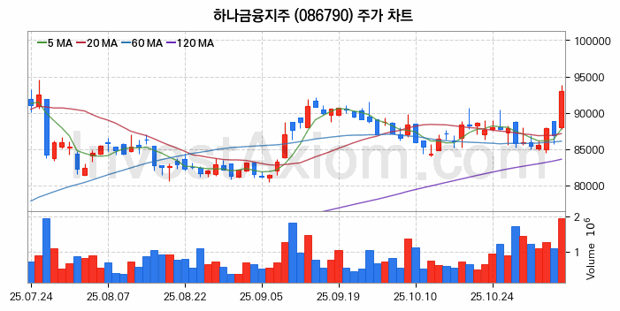하나금융지주 주가 전망 분석, 주식 차트 분석과 기간 수익률 및 주가 변동성 분석 (25년11월06일)