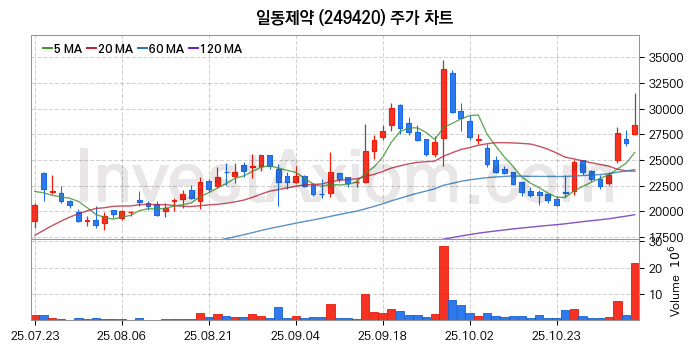 일동제약 주가 전망 분석, 주식 차트 분석과 기간 수익률 및 주가 변동성 분석 (25년11월05일)