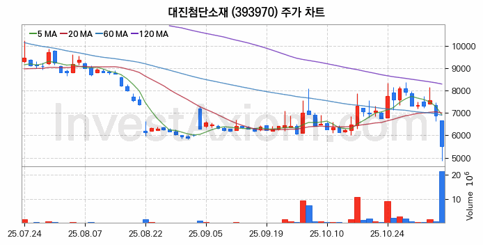 대진첨단소재 주가 전망 분석, 주식 차트 분석과 기간 수익률 및 주가 변동성 분석 (25년11월06일)