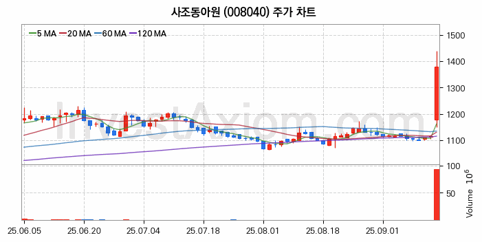 사조동아원 주가 전망 분석, 주식 차트 분석과 기간 수익률 및 주가 변동성 분석 (25년09월12일)