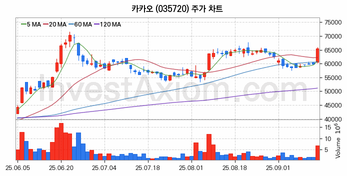카카오 주가 전망 분석, 주식 차트 분석과 기간 수익률 및 주가 변동성 분석 (25년09월12일)