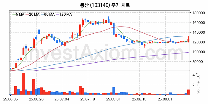 풍산 주가 전망 분석, 주식 차트 분석과 기간 수익률 및 주가 변동성 분석 (25년09월12일)
