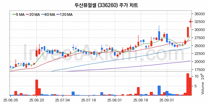 두산퓨얼셀 주가 전망 분석, 주식 차트 분석과 기간 수익률 및 주가 변동성 분석 (25년09월12일)