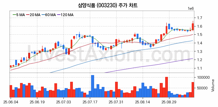 삼양식품 주가 전망 분석, 주식 차트 분석과 기간 수익률 및 주가 변동성 분석 (25년09월11일)