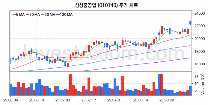 삼성중공업 주가 전망 분석, 주식 차트 분석과 기간 수익률 및 주가 변동성 분석 (25년09월11일)