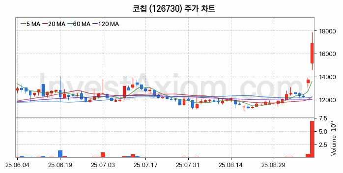 코칩 주가 전망에 참고될 수 있는 상세한 주식 기술적 분석 결과(2025년 09월 11일 기준)를 제공하며, 전 거래일 대비 약 22.88% 상승한 주식시장에 상장된 코칩 주식 종목의 주가 차트를 비롯해 주가 상태, 주식 거래량, 기간 수익률, 주가 이동평균 및 기간 주가 변동성 기반 분석 결과를 제공합니다.