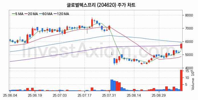 글로벌텍스프리 주가 전망 분석, 주식 차트 분석과 기간 수익률 및 주가 변동성 분석 (25년09월11일)