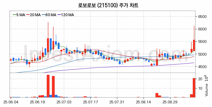 로보로보 주가 전망에 참고될 수 있는 상세한 주식 기술적 분석 결과(2025년 09월 11일 기준)를 제공하며, 전 거래일 대비 약 6.92% 상승한 주식시장에 상장된 로보로보 주식 종목의 주가 차트를 비롯해 주가 상태, 주식 거래량, 기간 수익률, 주가 이동평균 및 기간 주가 변동성 기반 분석 결과를 제공합니다.
