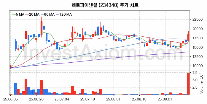 헥토파이낸셜 주가 전망 분석, 주식 차트 분석과 기간 수익률 및 주가 변동성 분석 (25년09월12일)
