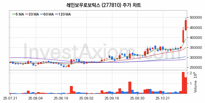 레인보우로보틱스 주가 전망 분석, 주식 차트 분석과 기간 수익률 및 주가 변동성 분석 (25년11월03일)