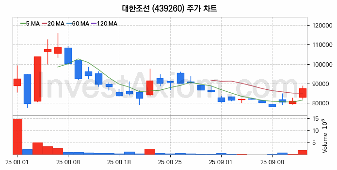 대한조선 주가 전망 분석, 주식 차트 분석과 기간 수익률 및 주가 변동성 분석 (25년09월11일)