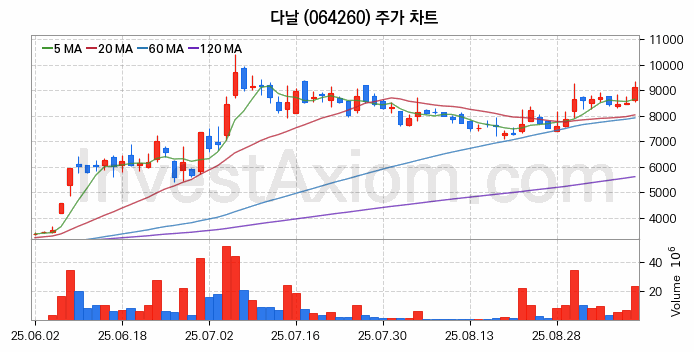 다날 주가 전망 분석, 주식 차트 분석과 기간 수익률 및 주가 변동성 분석 (25년09월10일)