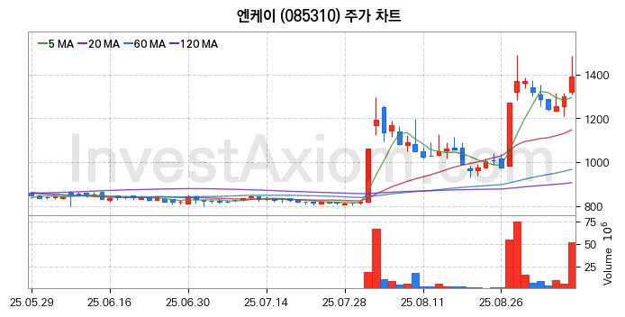 엔케이 주가 전망 분석, 주식 차트 분석과 기간 수익률 및 주가 변동성 분석 (25년09월08일)