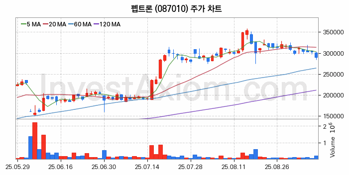 펩트론 주가 전망 분석, 주식 차트 분석과 기간 수익률 및 주가 변동성 분석 (25년09월08일)
